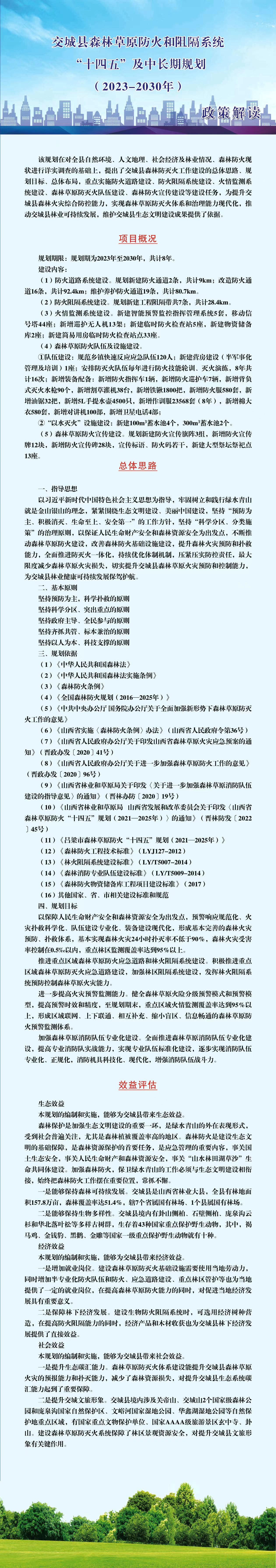 相關(guān)文件:關(guān)于印發(fā)交城縣森林草原防火和阻隔系統(tǒng)“十四五”及中長期規(guī)劃(2023—2030年)的通知