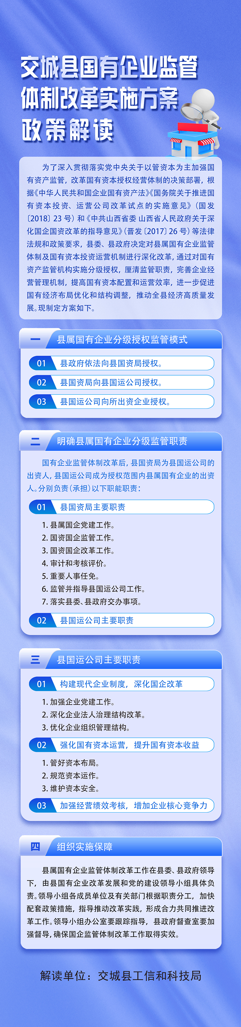 相關文件:關于印發(fā)交城縣屬國有企業(yè)監(jiān)管體制改革實施方案的通知