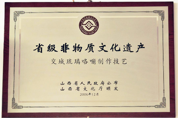 在幾百年的時間里,"琉璃咯嘣"作為民眾喜聞樂見的音樂玩具,與對聯(lián)、年畫、剪紙等一起成為我國北方鄉(xiāng)土文化中一個代表性的符號。交城琉璃咯嘣制造工藝獨特,造型稚拙樸素,具有珍貴的民俗文化價值。2006年12月,被評為“省級非物質(zhì)文化遺產(chǎn)”。