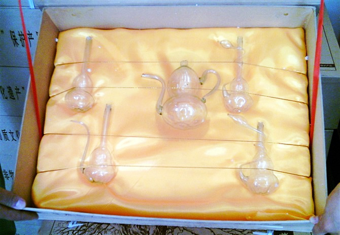 交城琉璃咯嘣的產(chǎn)生,和交城瓷器生產(chǎn)有密切關(guān)系。唐代,交城窯生產(chǎn)瓷器,是著名的花瓷腰鼓產(chǎn)地之一,并且已經(jīng)運(yùn)用“銅紅釉”。銅紅釉是瓷器生產(chǎn)中的尖端技術(shù),釉色鮮紅(一稱霽紅、祭紅),燒成難度極大,產(chǎn)品十分名貴。交城琉璃咯嘣在筑爐、吹制、配料多方面的制作技藝秘傳不泄,因此成為在全國以至全球“只此一家,別無分號”的絕活。熔化琉璃的爐子所需砌爐材料是就地取材,十分簡陋,是用磚頭與黃土砌就的,不砌煙囪,不要鼓風(fēng)。對場地要求也不苛刻,無論室內(nèi)室外都可砌爐生產(chǎn),完全是家庭作坊的格局。"琉璃咯嘣"的制作過程看起來似乎簡單,但其中火候的掌握可是個硬功夫,差之毫厘、失之千里。交城琉璃咯嘣嘣老技師按照師傅代代相傳的配方,在玻璃溶液中加入適量的銅屑、鐵屑,再結(jié)合火候的運(yùn)用,即能熟練地掌握艷麗的紫紅色玻璃薄膜技術(shù)。